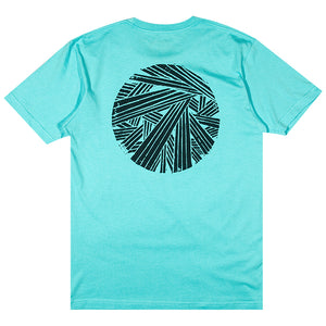 This tee design follows that ethos. Look closely and you will see what it's all about. A version of this art is also seen from time to time on his immaculate boards.